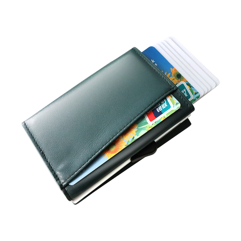 Custom Double Layer Credit Card Holder RFID Blocking Slim Wallet PU Leather Vintage Aluminum RFID card holder