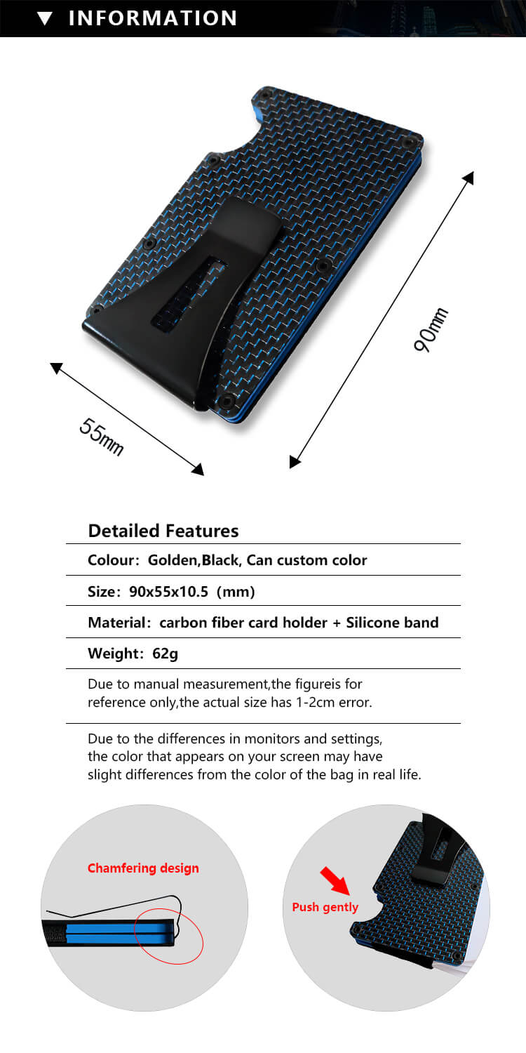 Customizable logo RFID Blocking slim Carbon Fiber Money Clip