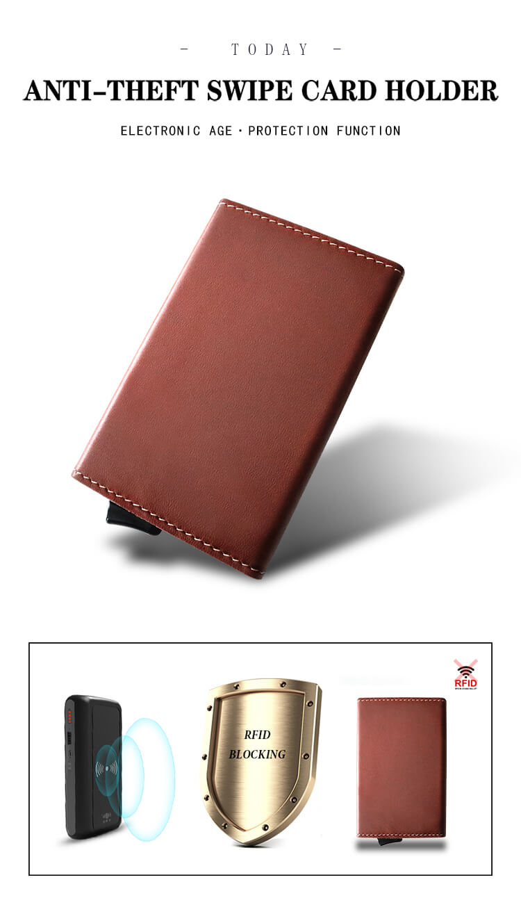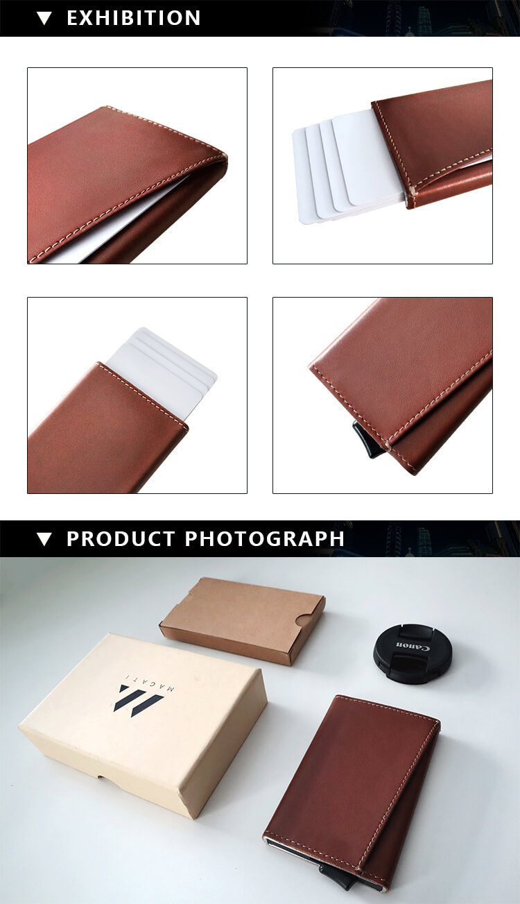 Super thin genius leathercard case RFID blocking metal credit card holder